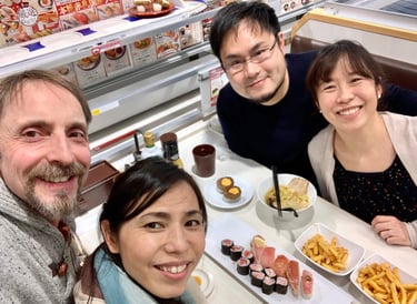 Here's a photo of us with our dear friends Sanna & Gord enjoying "conveyor belt" sushi.